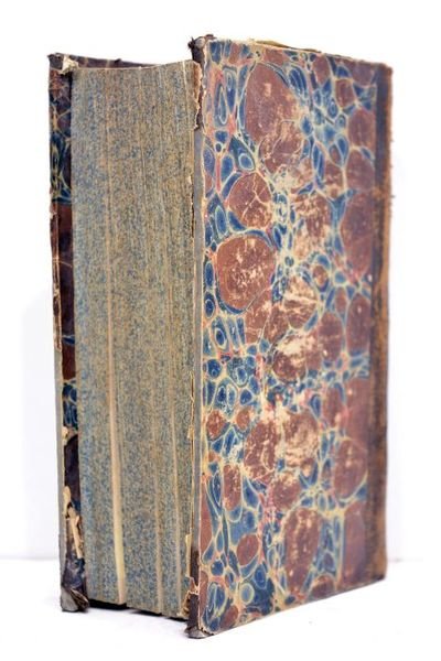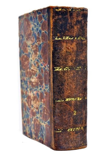 Tome 2 seul. 1030 pages. 3 cartes géographiques depliantes. (18,5x11,5cm). Demi-basane. Dos lisse. Plats en cartonnage couvert de papier marbré. Tranches marbrées. Reliure usagée. Dos très frotté. Coiffes élimées. Taches, frottements et manques de papier sans gravité sur les plats. Déchirures de papier sur les coupes. Rousseurs éparses à l'intérieur, Demi-basane de l'époque qui mérite une restauration. 3 cartes géographiques dépliantes à l'intérieur sur l'Asie, l'Afrique et l'Amérique.