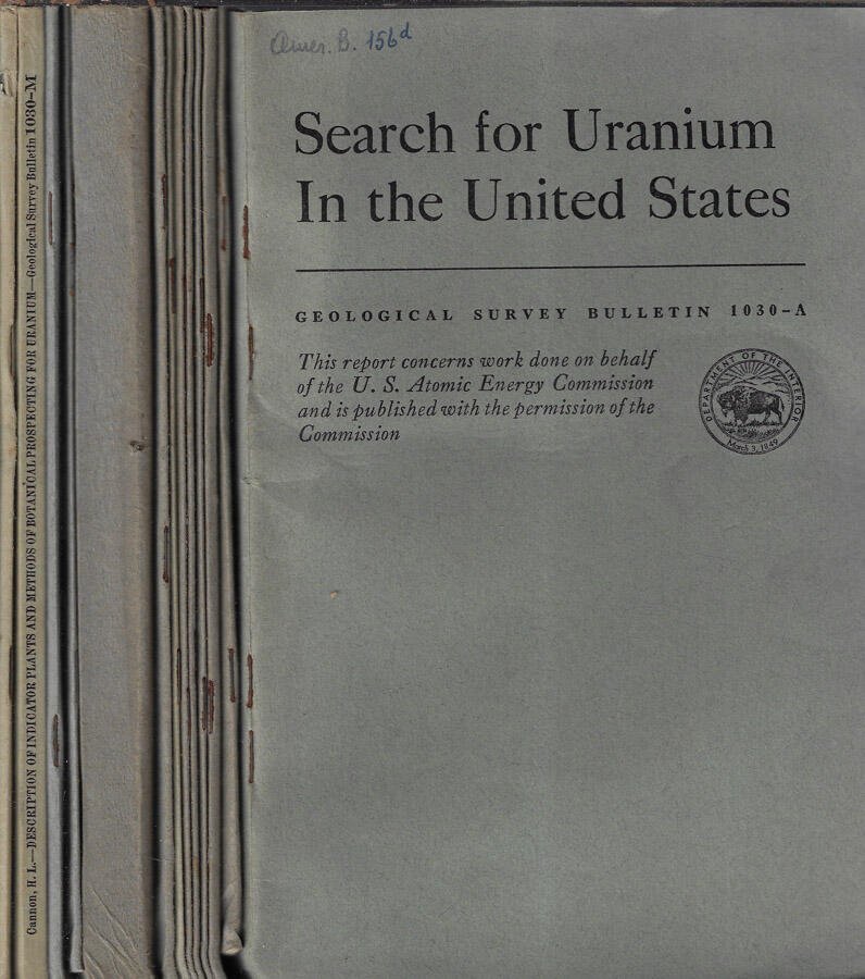 Quattordici fascicoli numero "1030" del bollettino "Geological Survey Bulletin" rispettivamente lettere A, B, C, D, E, F, G, H, I, J, K, L, M ed N. Lingua inglese. Pagine leggermente ingiallite dal tempo ma pienamente godibili. Tavole sciolte fuori testo poste in una tasca alla controguardia posteriore di occasionali fascicoli. I volumi potrebbero contenere timbri ed etichette dell'Istituto Veneto, regolarmente acquisiti dalla nostra libreria. Brossure leggermente ingiallite dal tempo mostranti lievi segni di usura da scaffale e da sfregamento e segno a biro al piatto anteriore di ogni fascicolo. Numerazione delle pagine consecutiva tra i volumi. Numero pagine complessive 552.