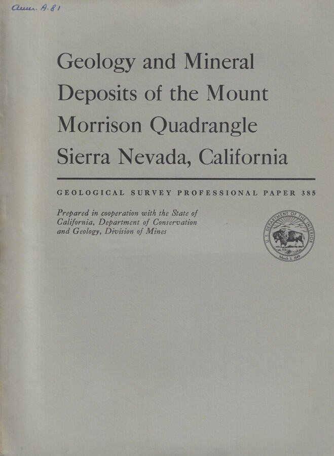 Geology and Mineral Deposits of the Mount Morrison Quadrangle Sierra Nevada, California