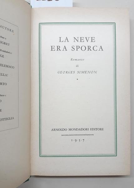 Georges Simon La neve era sporca Mondadori 1957 2∞ edizione