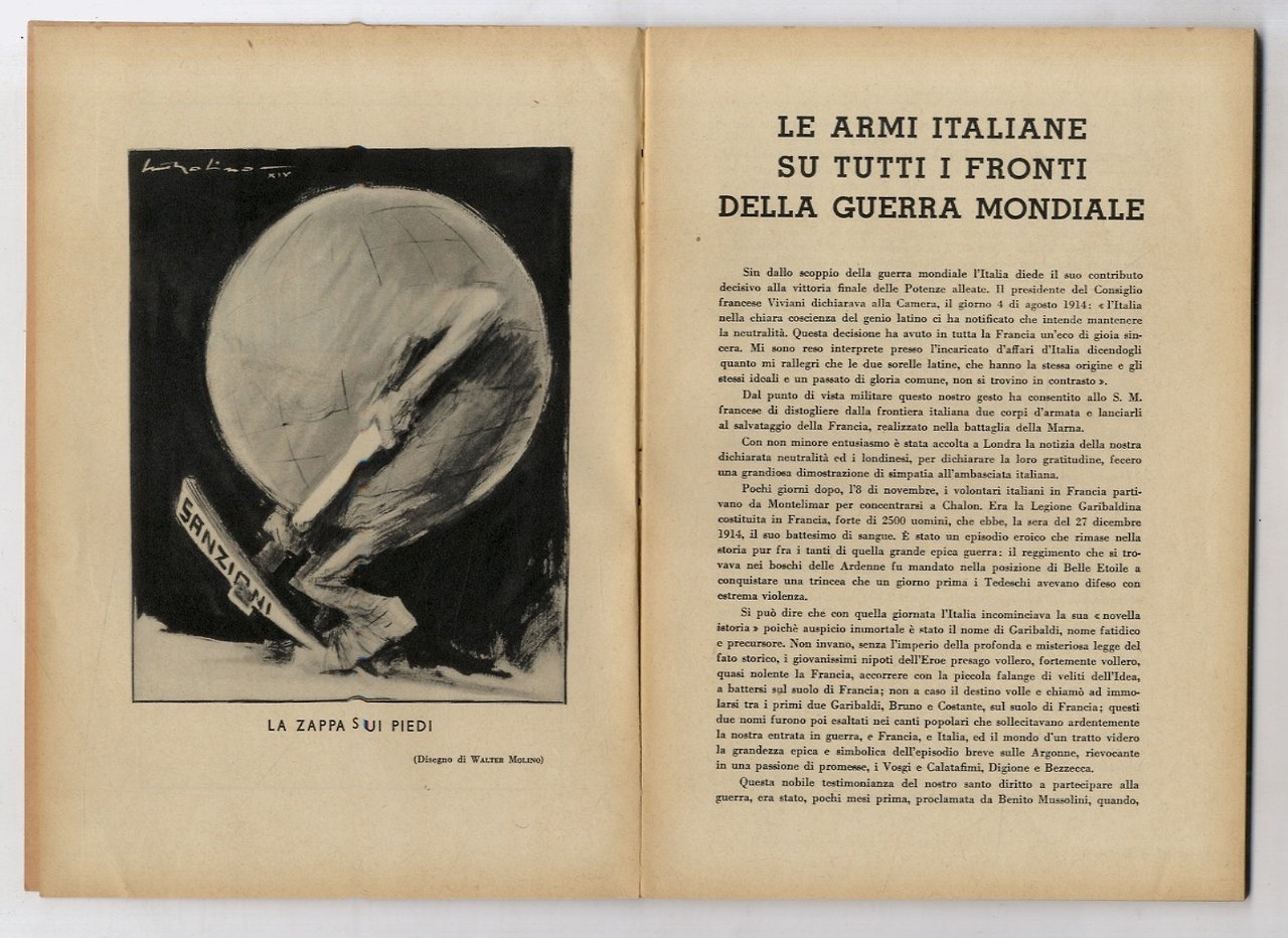 [Milano], [s.n.], 1936, un fascicolo in-8, br. editoriale con la copertina anteriore illustrata (non firmata ma Sironi), pp. [3], numerate da 78 a 148, [6]. Un numero di questo importante mensile fascista: testi di Gentili, Guarigli, Fioravanzo, Papalini, Famea; segnaliamo: "Le armi italiane su tutti i fronti della guerra mondiale" di Antonio Palumbo. Ottime condizioni. Conservata una fascetta editoriale.