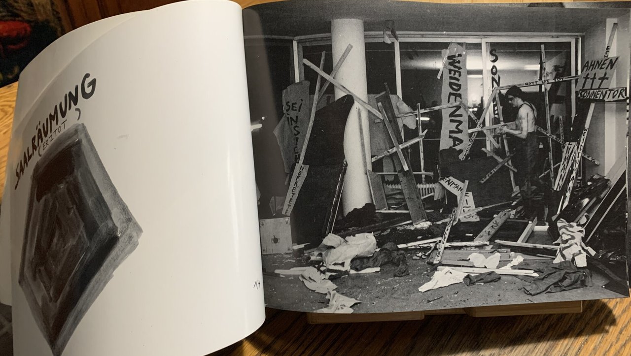 I ed.. Testo in tedesco (e inglese). VIII piccolo e oblungo/ 224/ brossura patinata con grafica in n/b e con due ritratti fotografici in b/n degli artisti. Illustrazioni in b/n. Stato buono. Inhalt: "Nicht böse sein". "Über die mythische Dimension im Werk von Jonathan Meese; Isabelle Graw (Der neue Beuys? - Leben or Theater? - Götter, Gräber und gele hrte - Der Verkörperlichte Mythos - Muß man Mythen kritisieren? - Archaischer Kunstbetrieb) - It was a very good year; Jörg Heiser (That was then - This is now - Well, wrong) - Gesinnungsbuch '99 - Aktionen, Privataktionen und Gralsstätten - Biografie Erwin Kneihsl (Ausstellungen, Filme, Perfoprmances (Auswahl): Filme 1975/83-Ausstellungen 1976/98-Ausstellungen (Beteiligungen) 1992/97-Performances 1977/97-Vorträge 1970/98)) - Biographie Jonathan Meese.