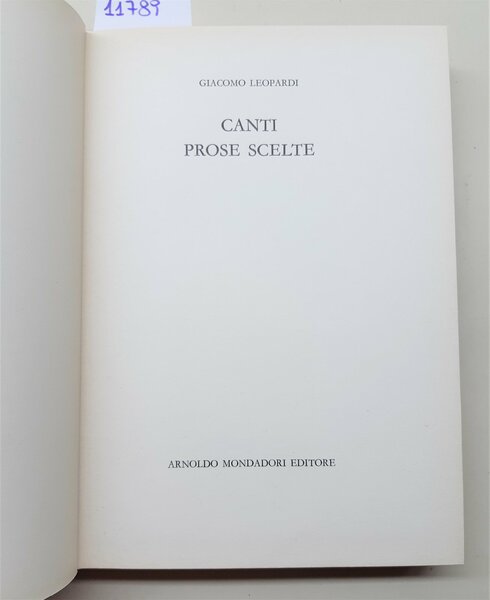 Giacomo Leopardi Canti prose scelte Mondadori 1962