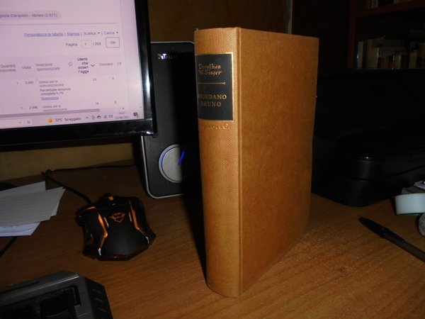 di Dorothea W. Singer. Milano, Longanesi & C., 1957. GIORDANO BRUNO di Dorothea W. Singer seguito dal testo originale De L' infinito Universo et Mondi. In-16°, tela edit. con titolo in oro al dorso. 485, (2) pp. Ben conservato. Neg. esot. mob. 10