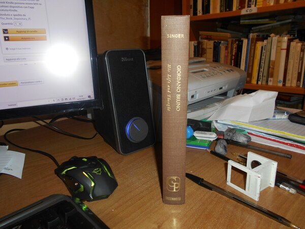 DOROTHEA WALEY SINGER. New York, Greenwood Press, 1968. GIORDANO BRUNO His Life and Thought. With Annotated Translation of His Work On the Infinite Universe and Worlds. In-8° piccolo, tela con titolo on oro al dorso. xi, 389 pp. con 15 tavole fuori testo. Come nuovo. Neg. mob. bianco nuovo comput.