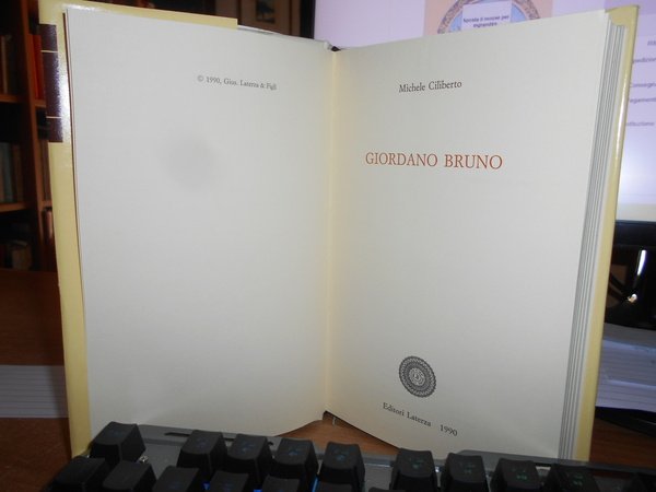 MICHELE CILIBERTO. Bari, Gius. Laterza & Figli, 1990. GIORDANO BRUNO. In-8° piccolo, tela edit. con sovracopertina. 306, (1), 11 pp. di pubblicità editoriale. Come nuovo. Prima dell' acquisto chiedere se disponibile. Grazie. Neg. mob. rosso