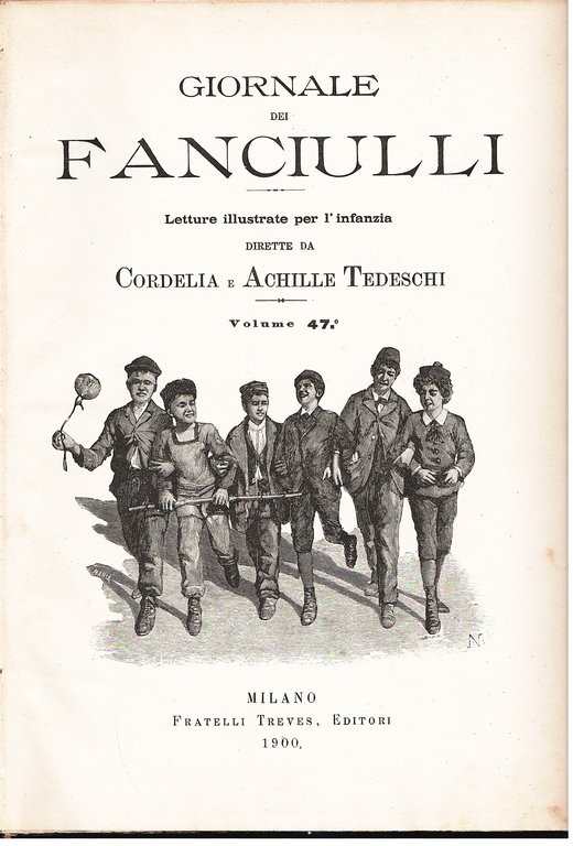 4° mezza pelle con tit. e fregi oro ai dorsi, (2 voll. in tela con le copp. origg. appl). Disponiamo: anno IX - 1889 (vol. 24 e 25); X-1890 (vol. 26 - 1° sem.); XI-1891 (vol. 28 e 29); XII-1892 (vol. 30 e 31); XIII-1893 (vol. 32 e 33); XIV-1894 (vol. 34 e 35); XV-1895 (vol. 36 e 37); XVI-1896 (vol. 38 e 39); XVII-1897 (vol. 40 e 41); XVIII-1898 (vol. 42 e 43); XIX-1899 (vol. 44 e 45); XX-1900 (vol. 46 e 47); XXI-1901 (vol. 48 e 49). Ogni vol. con centinaia di incisioni xilogr. nel testo di Fort. Matania, A. Ferraguti, V. Cabianca, G. Favretto ecc. Tra i più importanti periodici per l'infanzia dell'ottocento che ebbe un notevole successo.Di particolare interesse il fascicolo n° 38 del 1893 che ospita la prima edizione del racconto i pescatori di balene di Salgari, uscito in volume l'anno seguente. In totale sono 25 volumi. Vol. 40 mancano le prime 2 pp.; vol. 49 manca la 1a pag. d'indice, alcune pp. staccate e altre margin. tracce d'uso.