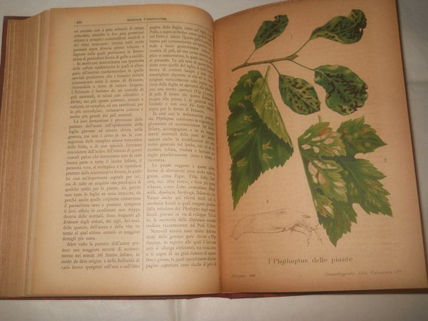 - fascicoli rilegati in volume con mezza tela e copertine marmorizzate, pag. 583, formato cm. 18 x 26, svariate incisioni e una dozzina di cromolitografie a colori