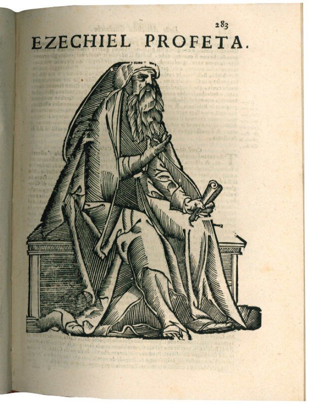 Due parti in un volume in 8vo (mm. 226x167). Pp. [24], 544, 291, [1]. Vignetta xilografica ai due frontespizi, vari capilettera, testatine e finalini xilografici, numerose illustrazioni xilografiche nel testo anche a piena pagina, riportanti personaggi come i profeti Giacobbe, Samuele, Salomone, ecc. o accadimenti biblici. Carta leggerissimamente brunita, lieve macchia alla c. a3, piccolo foro alla c. B3 che tocca lievemente il testo. Presente al foglio di guardia r. ex libris illustrato ‘Guido Acerbi. Brigata Garibaldi'. Mezza pergamena rigida moderna con titolo in oro su tassello al dorso. Ottima copia.
