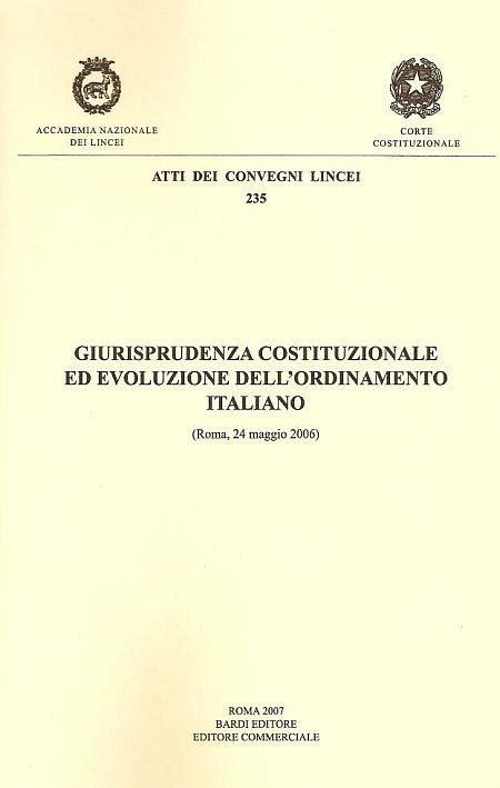 Giurisprudenza costituzionale ed evoluzione dell'ordinamento italiano, Roma, Accademia Nazionale dei Lincei, 2008