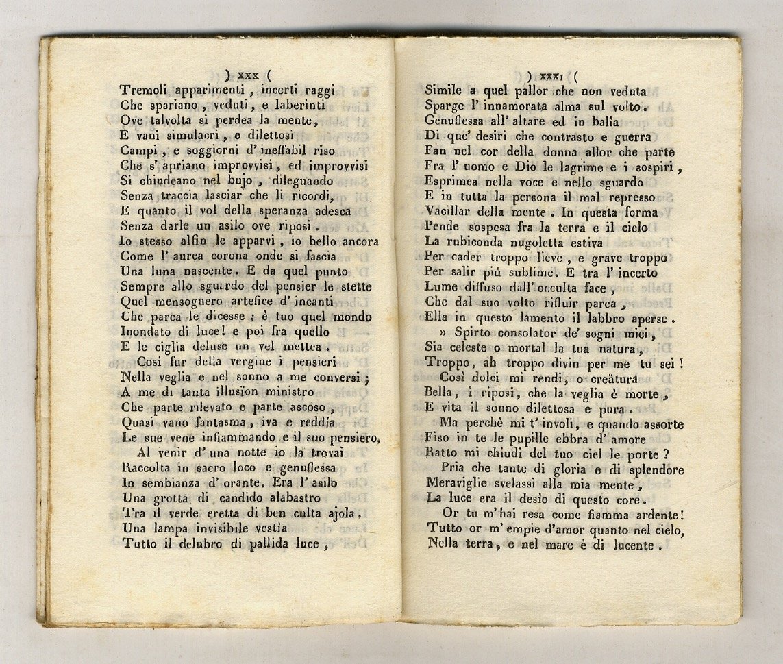 Capolago, Tipografia Elvetica, 1836, in-16, brossura originale con cornice tipografica, pp. [4], LXVI, [2]. Prima traduzione italiana (nello stesso anno la stessa fu edita a Livorno). Edizione non presente in ICCU. Un piccolo foro sulla coperta anteriore.