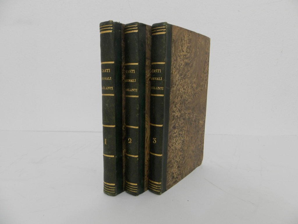 3 volumi, in 8^, pp. (8), 196, (2); 211; 215, (1); rilegatura ottocentesca in mezza pelle, titolo e fregi in oro al dorso, piatti marmorizzati, tagli spruzzati. Al frontespizio dell'opera è segnalato: A Pe-King regnante Kien-Long. In realtà è stata stampata a Parigi da Molini. L'opera è in versi giocosi ed ha ispirato i Paralipomeni della Batracomiomachia di Leopardi. Esemplare fresco e molto buono. Per il luogo di pubbl. e l'editore cfr. M. Parenti, Dizionario dei luoghi falsi, inventati o supposti, p. 168, in cui e citata un'altra opera dello stesso A. con le medesime note tipografiche.. *** TUTTI I NOSTRI LIBRI SONO VISIBILI PREVIO CONTATTO MAIL O TELEFONO NELLA NUOVA SEDE DI MILANO: LIBRERIA COSMOPOLIS, VIA JOMMELLI, 22. ***