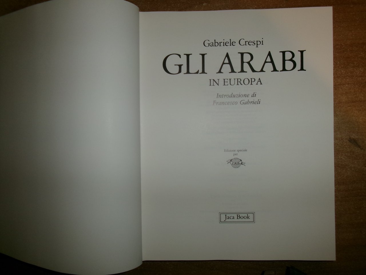 Gabriele Crespi. Milano, Edizione speciale per Jaca Book, 1988. GLI ARABI IN EUROPA. Introduzione di francesco Gabrieli. In-4°, tela edit. bleu con sovracopertina ill. a col. 332 pp. con numerose illustrazioni la maggior parte a colori n.t. Come nuovo. Uff. C - II - 4 - 2
