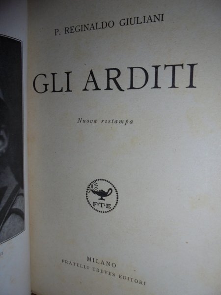 Padre Reginaldo Giuliani. Milano, Fratelli Treves, 1934. GLI ARDITI. In-16 grande, br. muta con piccole alette. Ritratto del Giuliani in antiporta. 251, (2) pp. In ottimo stato di conservazione. Neg. mob. nero 9