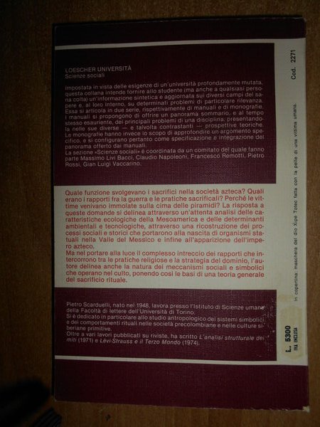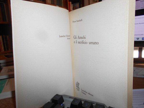 PIETRO SCARDUELLI. Torino, Loescher Editore, 1980. GLI AZTECHI e il SACRIFICIO UMANO. In-16° grande, cart edit. 219 pp. Ben conservato. Neg. esot. mob. 10