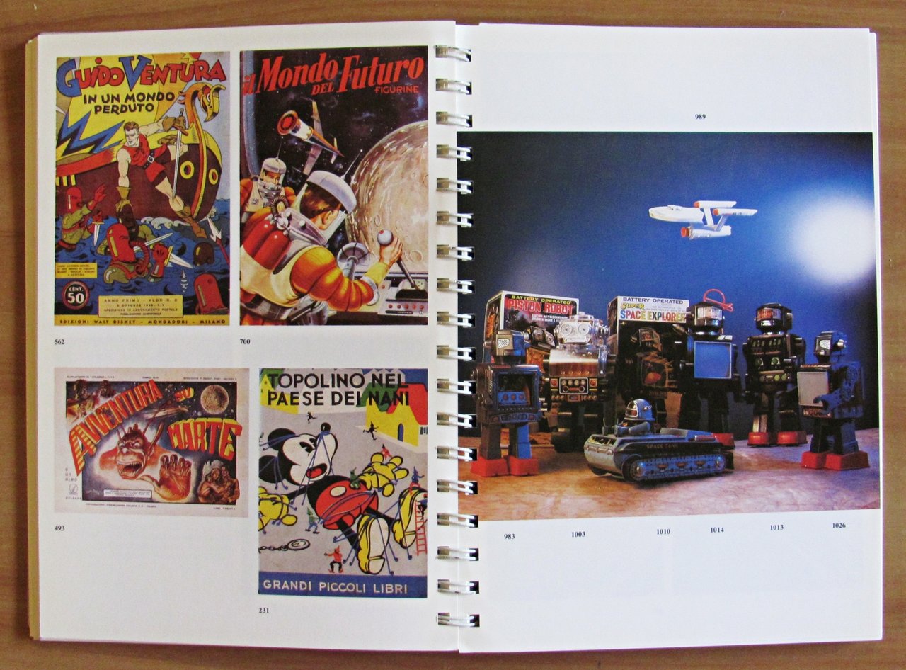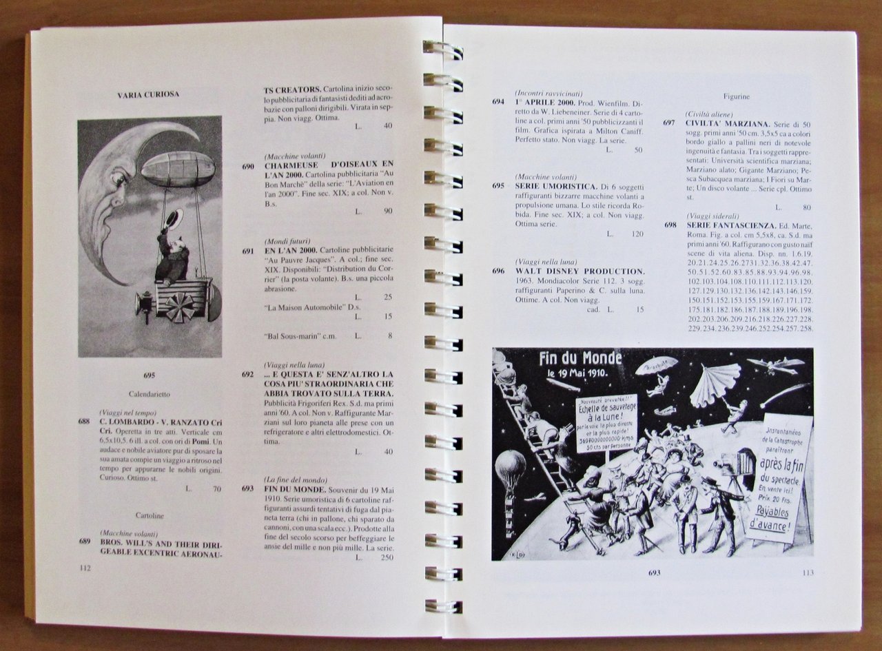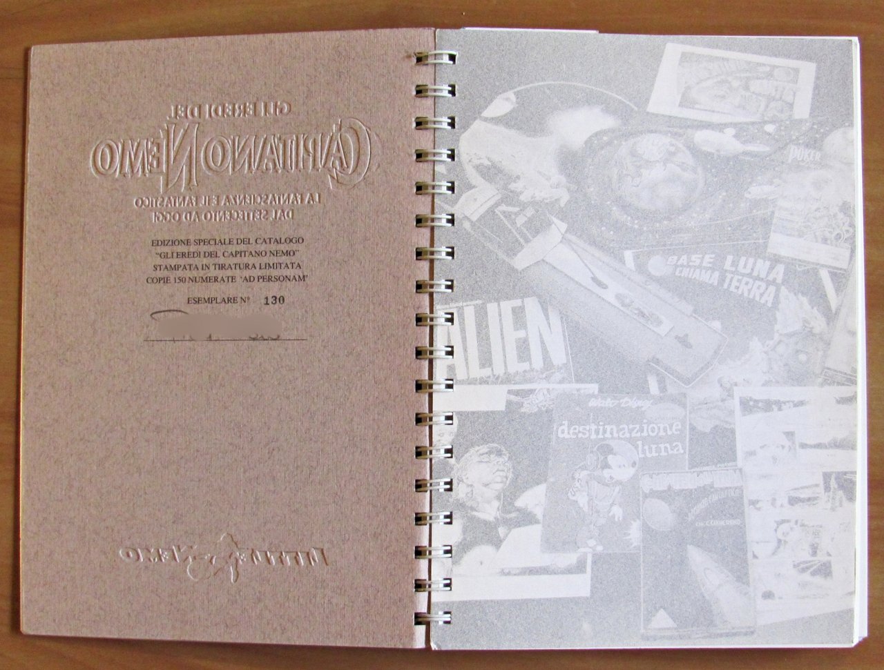 La fantascienza e il fantastico dal Settecento ad oggi. Edizione Speciale del catalogo "Gli Eredi del Capitano Nemo" stampata in Tiratura Limitata copie 150 numerate "ad personam" Esemplare 130 con nome scritto a matita. Ed. Little Nemo - Torino, s.d. anni 1990. Splendide copertine in lastra di metallo, illustrato in tricromia al piatto, con dorso a spirale sempre metallica. 18x24; pp.139. Rarissimo e in Stato di Nuovo. , Perfetto (Mint)