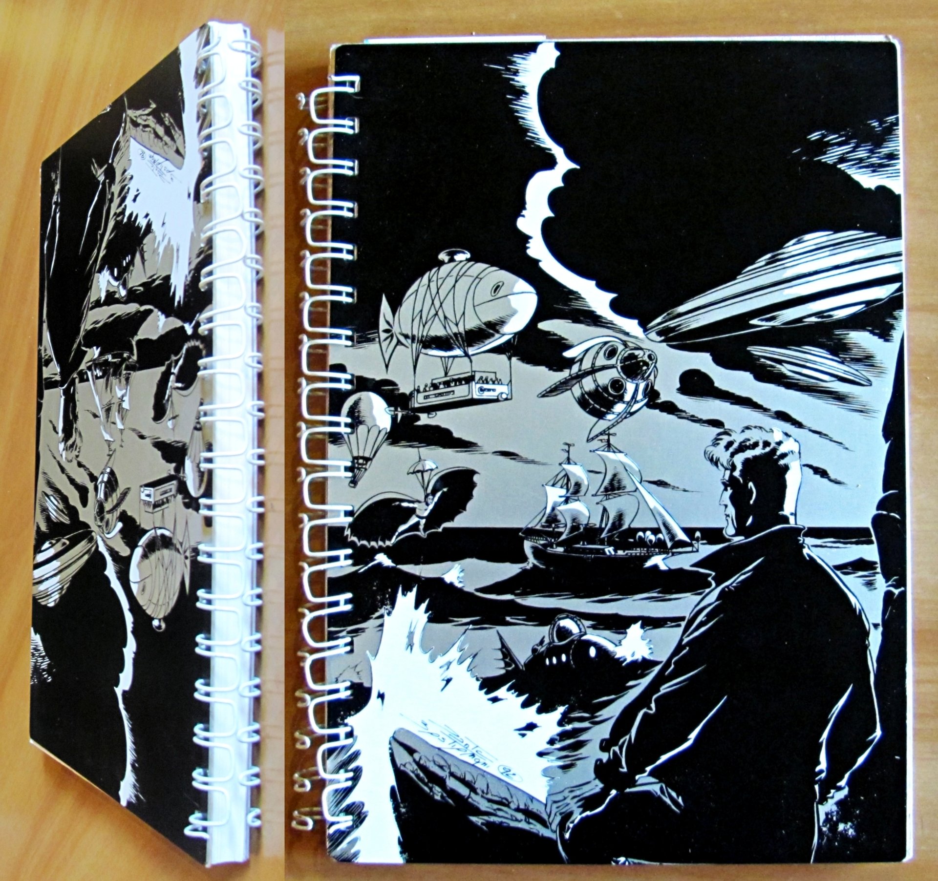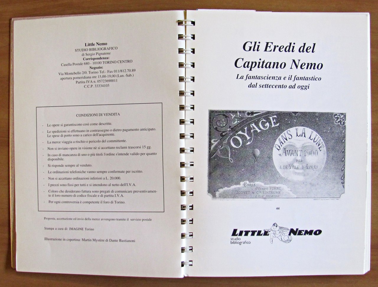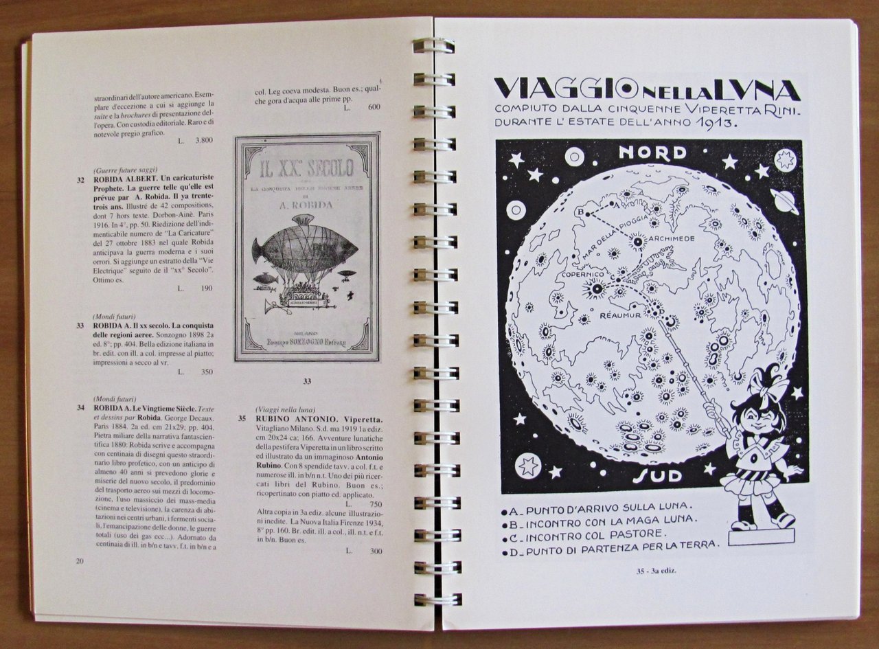 La fantascienza e il fantastico dal Settecento ad oggi. Edizione Speciale del catalogo "Gli Eredi del Capitano Nemo" stampata in Tiratura Limitata copie 150 numerate "ad personam" Esemplare 130 con nome scritto a matita. Ed. Little Nemo - Torino, s.d. anni 1990. Splendide copertine in lastra di metallo, illustrato in tricromia al piatto, con dorso a spirale sempre metallica. 18x24; pp.139. Rarissimo e in Stato di Nuovo. , Perfetto (Mint)