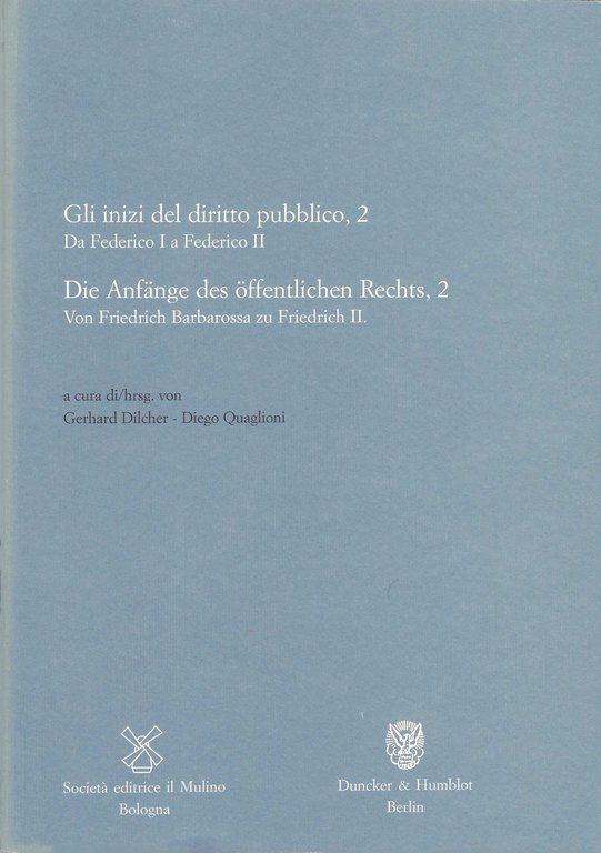 Dilcher Gerhard, Quaglioni Diego: Gli inizi del diritto pubblico, 2. Da Federico I a Federico II. Die Anfange des offentlichen Rechts, 2. Von Friedrich Barbarossa zu Friedrich II Il Mulino, Dunker & Humblot, 2011.