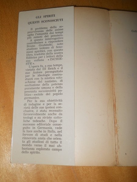 BRUNO GRABINSKI, gli spiriti questi sconosciuti - Massimo, 1961 - copertina morbida con alette interne, pag. 453, formato cm. 11,5 x 18,5 - buono stato con normali segni tempo e lettura, senza sottolineature o altro di simile
