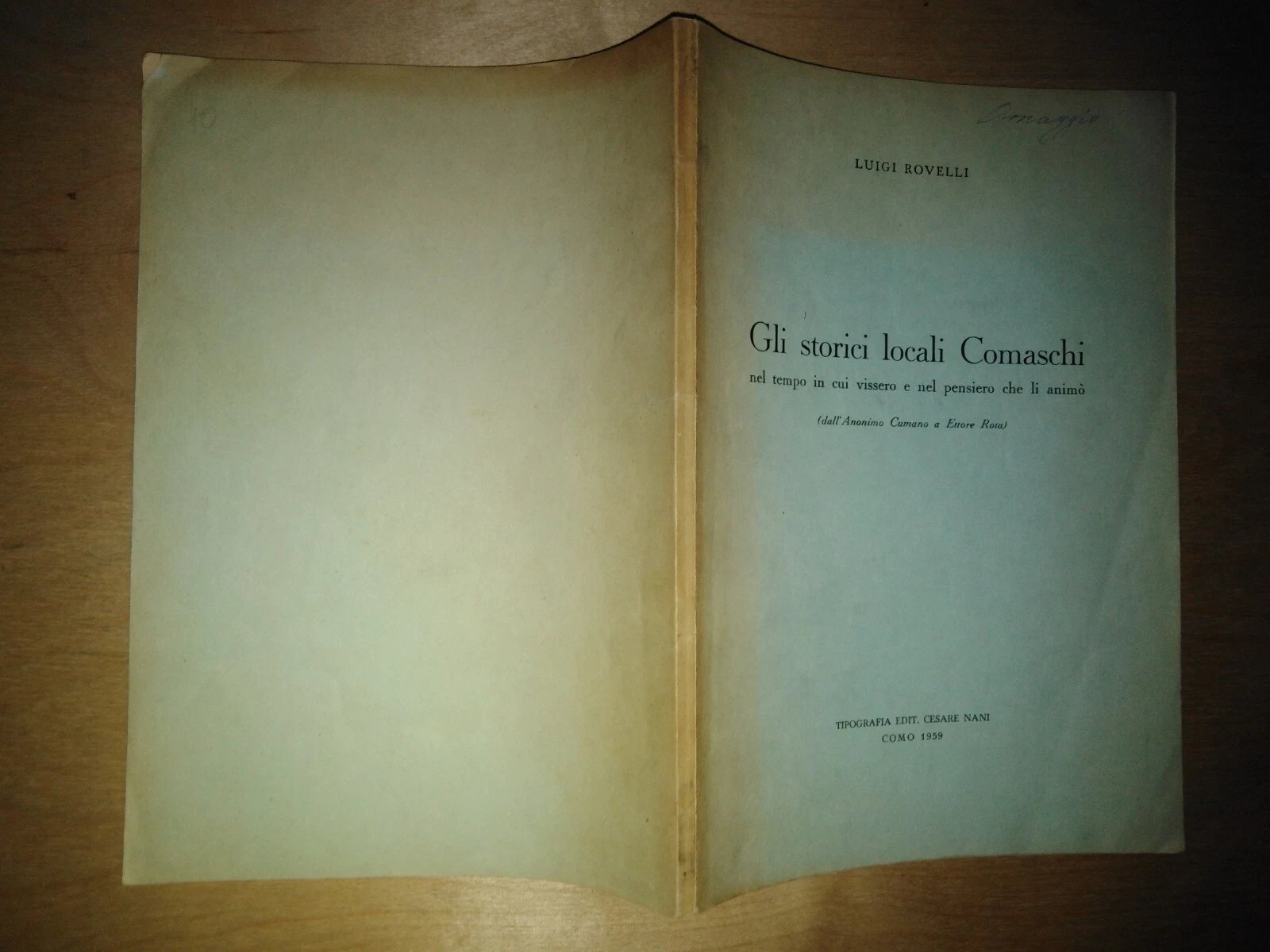 LUIGI ROVELLI, gli storici locali comaschi nel tempo in cui vissero e nel pensiero che li animò - tip. Cesare Nani, Como, 1959