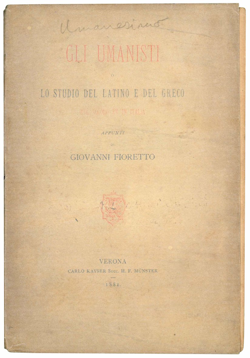 Gli Umanisti o lo studio del latino e del greco nel secolo XV in Italia.