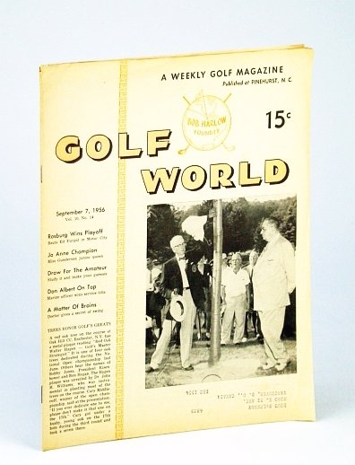 - Golf World - A Weekly Golf Magazine, 7 September (Sept.), 1956, Vol. 10, No. 14 - Cover Photo of Dr. John H. Williams Unveiling Hagan, Plaque at Oak Hill CC Rosburg wins playoff, Jo Anne Gunderson junior queeen, Don Albert on Top, Doctor gives a secret of swing, Photo of Patty LaFrancis with daughter Angela Mary, Photo of Dick Siderowf receiving trophy from Randy Nielson, Photo of Attorney Robert Sandler with large trophy, Photo of young Jim Milewski of Detroit, Large group photo of junior golfers on the Sebring municipal, course - winner was Al Yancey Sport Magazine Back Issues