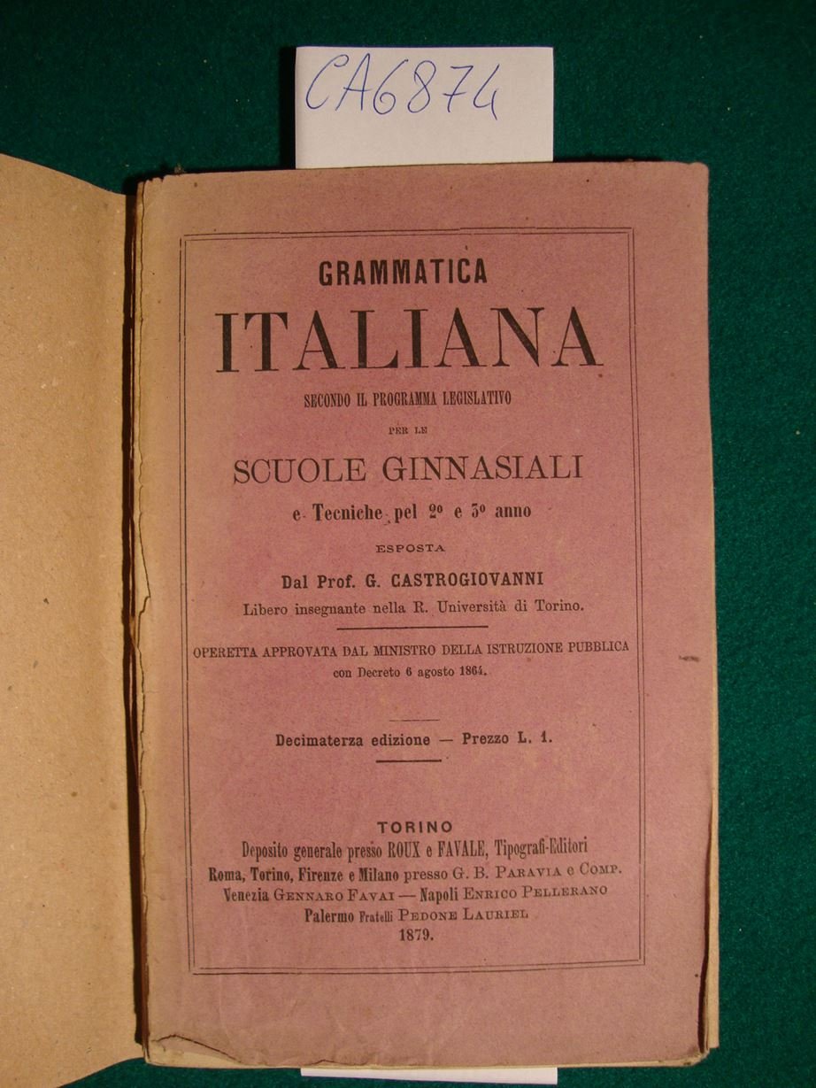 Grammatica italiana secondo il programma legislativo per le scuole ginnasiali e Tecniche pel 2° e 3° anno esposta Dal Prof. G. Castrogiovanni (Libero insegnate nella R. Università di Torino)