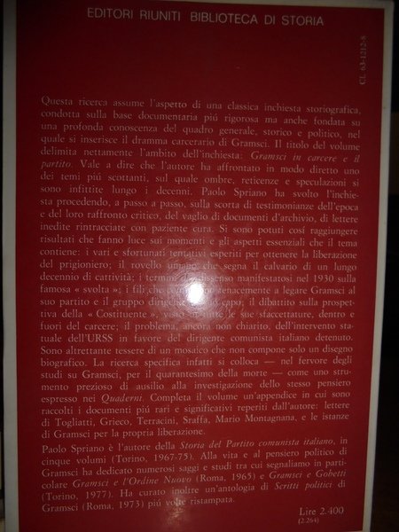 Paolo, Spriano. Roma, Editori Riuniti, 1977. GRAMSCI in carcere e il partito. In-8°, cart. edit. con alette. 166 pp. Ben conservato. Neg. storia sotto.