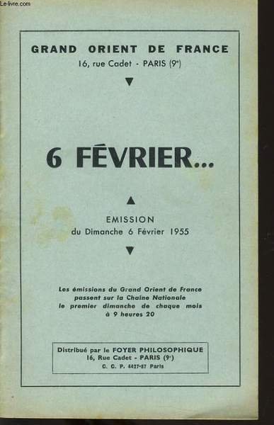 GRAND ORIENT DE FRANCE : 6 FEVRIER. �mission du dimanche 6 f�vier 1955