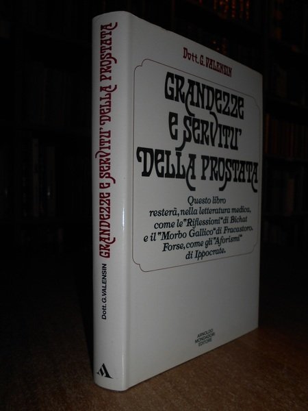 G. Valensin. Milano, A. Mondadori, 1973. Grandezze e servitù della prostata. In-8° piccolo, tela edit. con titolo in oro al dorso, sovracopertina. 229, (1) pp. Come nuovo. Neg. Med. mob. G