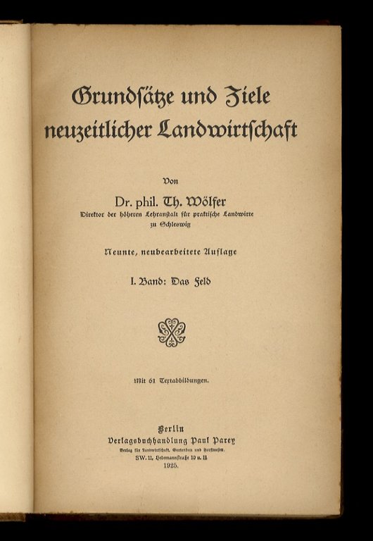 Grundsätze und Ziele neuzeitlicher Landwirtschaf. 1. Band: Das Feld. 2. Band: Der hof. 3. Band: Der Betrieb. Neunte Auflage.