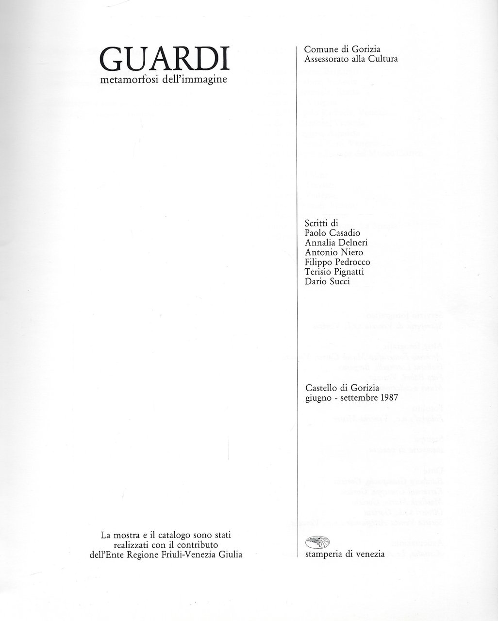 Catalogo della mostra allestita al Castello di Gorizia, giugno-settembre 1987 a cura di Terisio Pignatti, scritti di Paolo Casadio, Annalia Delneri, Antonio Niero, Filippo Pedrocco, Terisio Pignatti, Dario Succi.