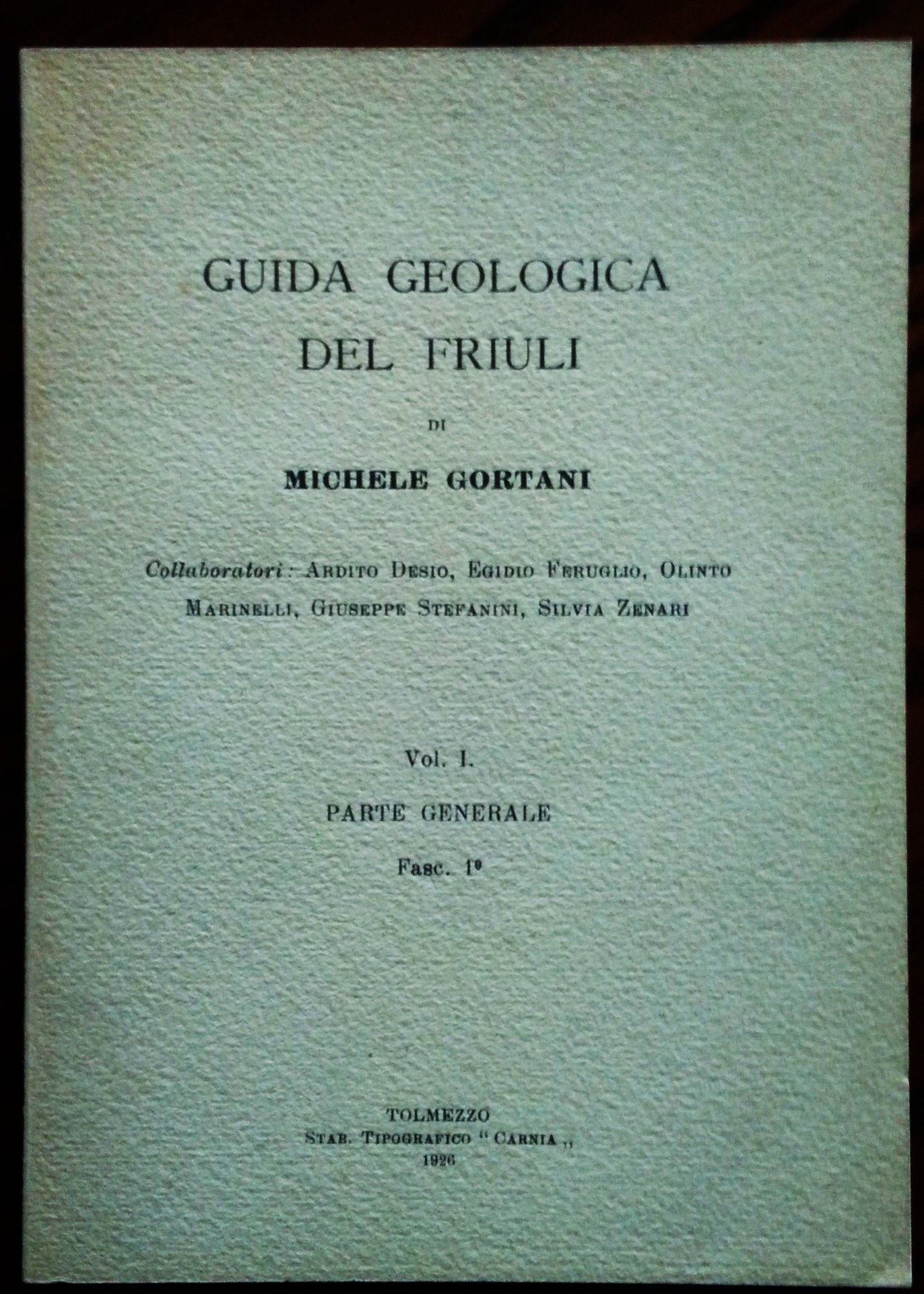 Guida geologica del Friuli. Collaboratori Ardito Desio, Egidio Feruglio, Olinto Marinelli, Giuseppe Stefanini, SilviaZenari. Vol I. Parte Generale.