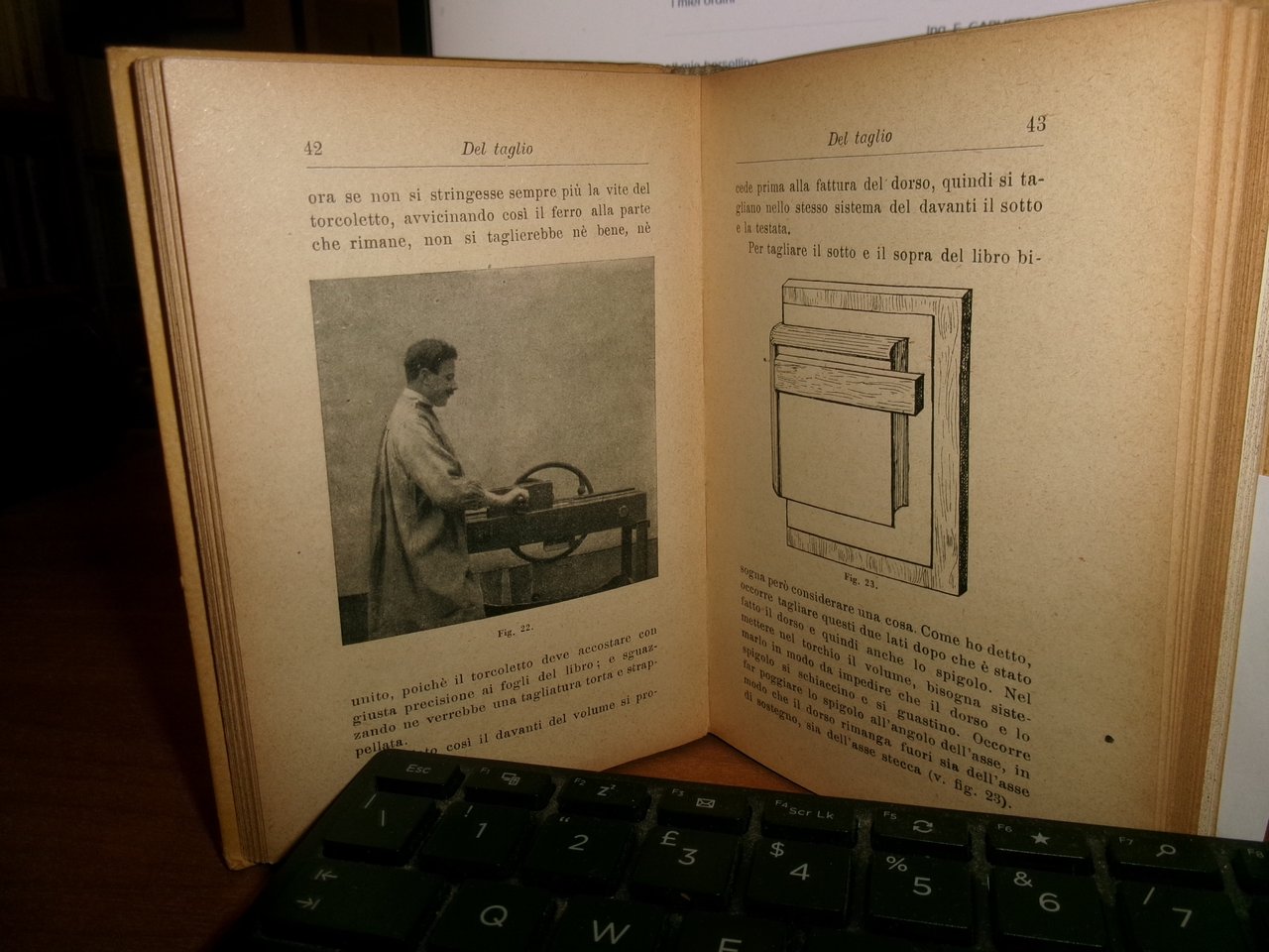 GUIDO GIANNINI. Il Dilettante Legatore di Libri con brevi cenni storici. Milano, Ulrico Hoepli, 1923 terza edizione ampliata e corretta. In-16°, cartonato edit.xxiii, 237 pp. con 110 incisioni e 33 tavole fuori testo (due a colori). Ben conservato con firma nella prima bianca. Neg. scat. ultimi Hoepli.