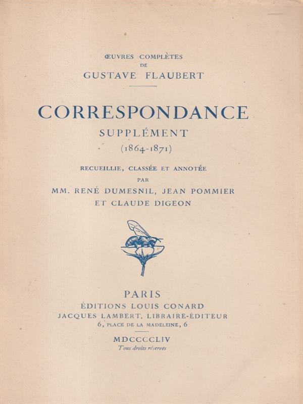 Gustave Flaubert Correspondance Supplement (1864-1871)