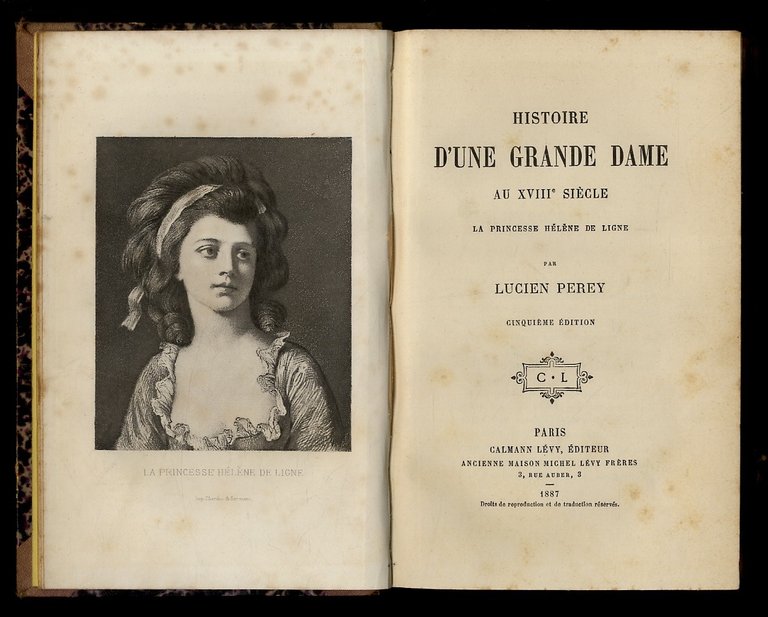 Paris, Calmann Lévy, Editeur, 1887, in-8, legatura coeva in mezza tela con punte, titolo in oro al dorso, pp. [4], XII, [2], 487, [1]. Con ritratto inciso in acciaio in antiporta. Buone condizioni. L'opera comprendeva anche un volume intitolato “La princesse Helène Potocka”.