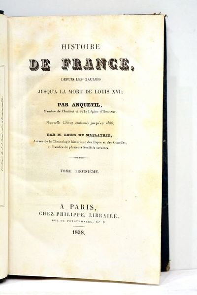 Histoire de France, depuis les Gaulois jusqu'à la mort de Louis XVI. Nouvelle édition continuée jusqu'en 1838 par M. Louis de Maslatrie. Tome troisième.