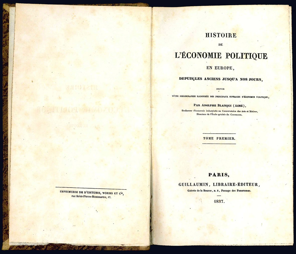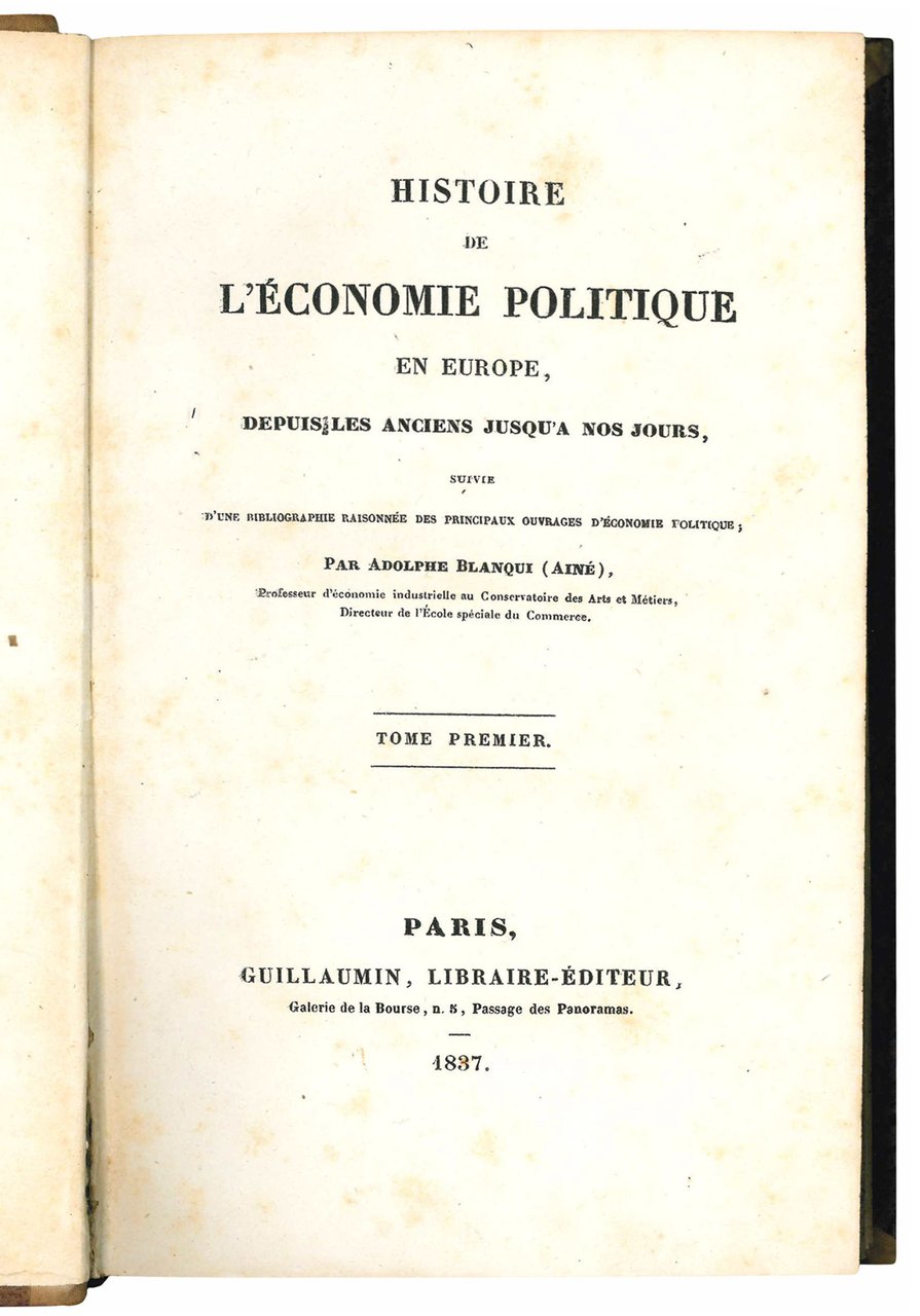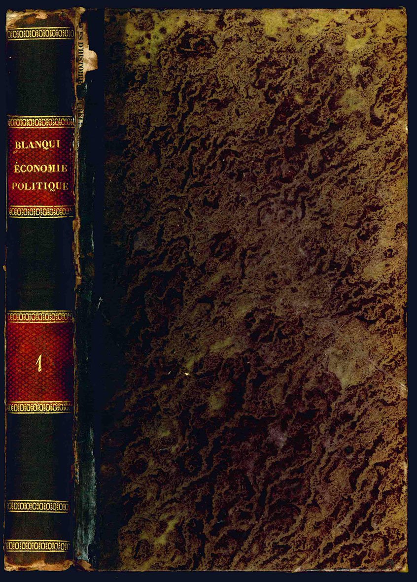EDIZIONE ORIGINALE. Una seconda ed una terza edizione vennero pubblicate dallo stesso Guillaumin nel 1860 e nel 1882. Sostenitore del libero scambio, Blanqui successe a Say nella cattedra di economia politica presso il Conservatoire des Arts et Métiers nel 1833.