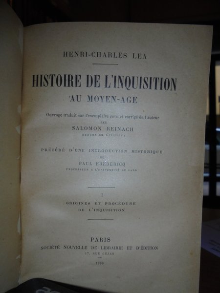 Histoire De L' Inquisition au Moyen-Age. Ouvrage traduit sur l' exemplaire revu et corrigé de l' Auteur par Salomon Reinach