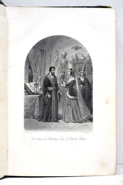 2 tomes en 1 volume Tomes 1 et 2 seuls. 362 pages. 4 planches illustrées. + 361 pages. 4 planches illustrées. (25x17cm). Demi-chagrin vert. Plats en cartonnage couvert de papier marbré. Reliure très usagée. Epidermures sur le dos. Frottements et maques de papier sur les plats. Bords et coins émoussés. Rousseurs à l'intérieur. Quelques défauts d'usage. Bon état intérieur. Plaisant exemplaire relié dans un demi-chagrin qui mérite une importante restauraiton. Ouvrage complet de belles gravures en noir.