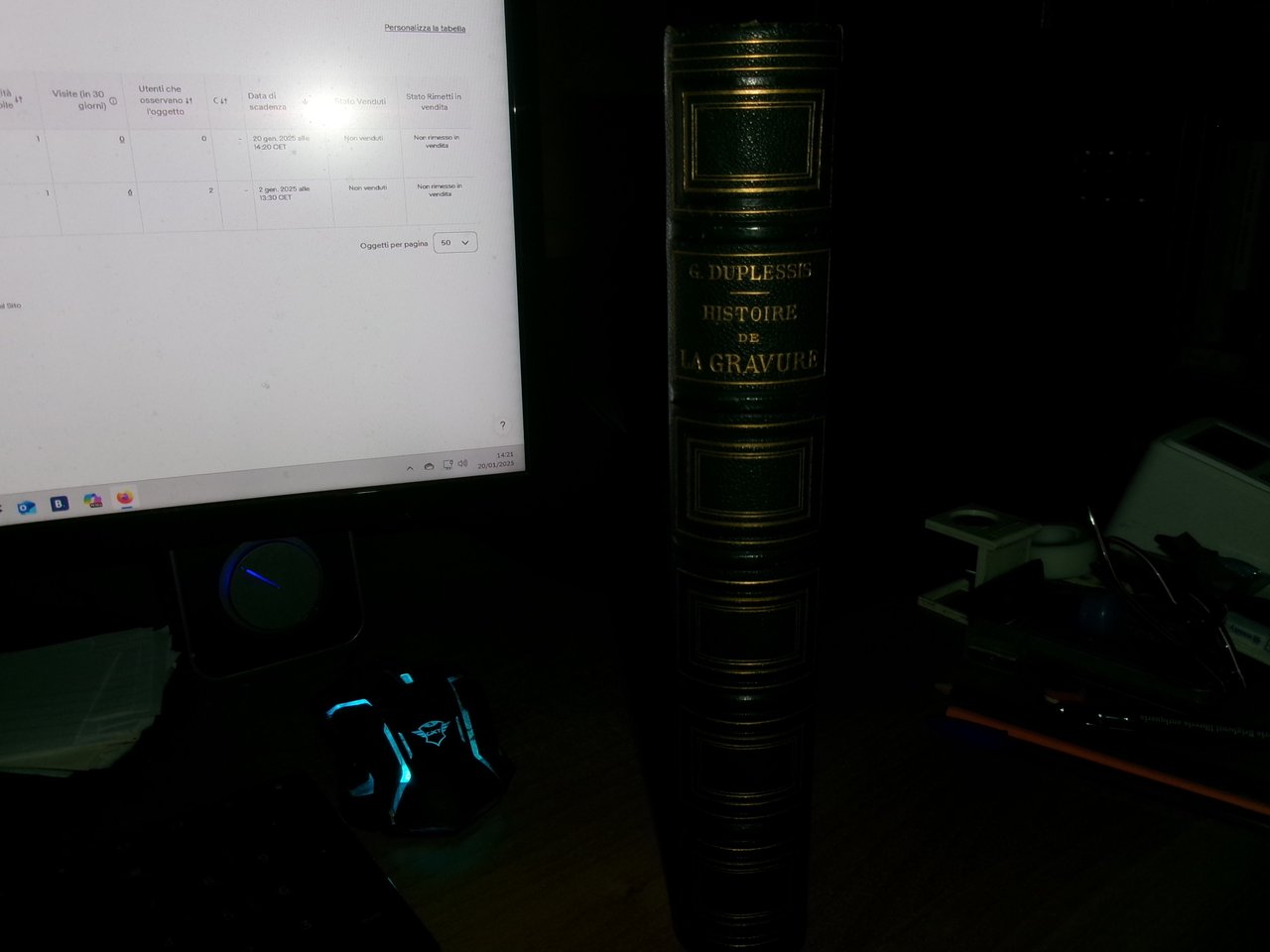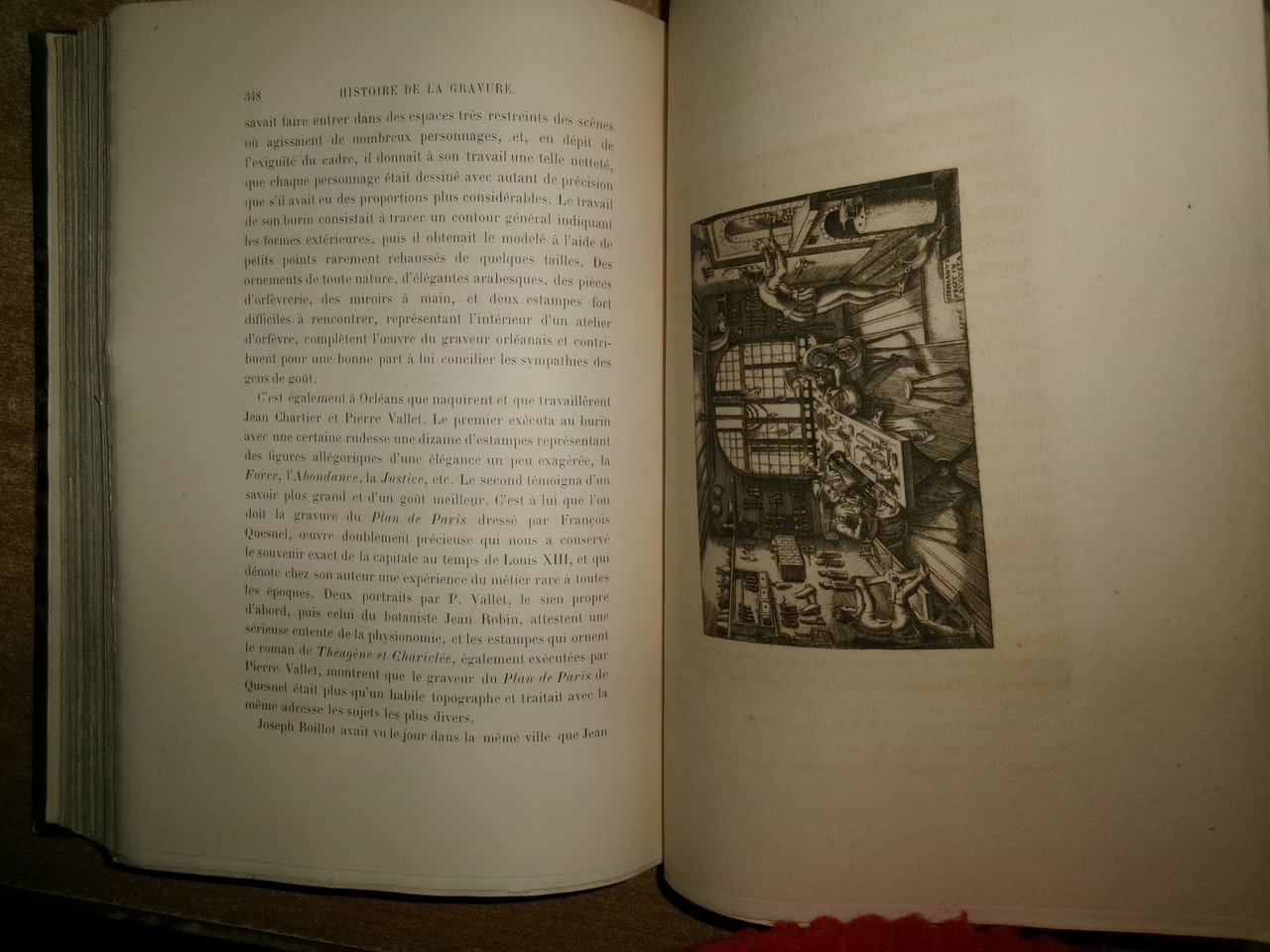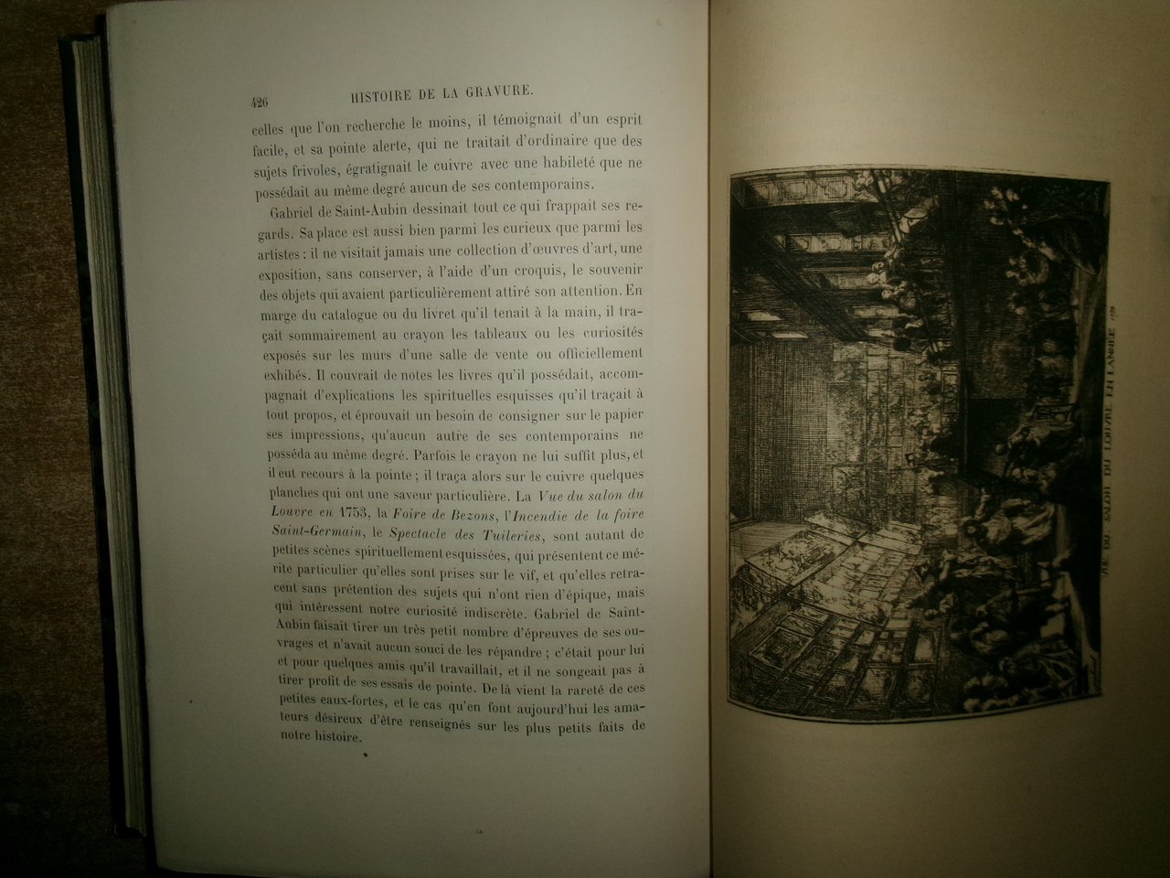DUPLESSIS, George. Paris, Libr. Hachette, 1880. Histoire de la gravure en Italie, en Espagne, en Allemagne, dans les Pays-Bas, en Angleterre et en France, suivie d' indications pour former une collection d' estampes... contenant 73 reproductions de gravures anciennes exécutées pour la plupart par le procédé de M. Amand Durand. In-8° grande, m. pelle con angoli, dorso a nervi, taglio sup. dorato. (4), 528 pp. con illustrazioni n.t. e 73 tavole f.t. Bell' esemplare. Colin, La gravure et les graveurs, 224. Neg. arte mob. 11