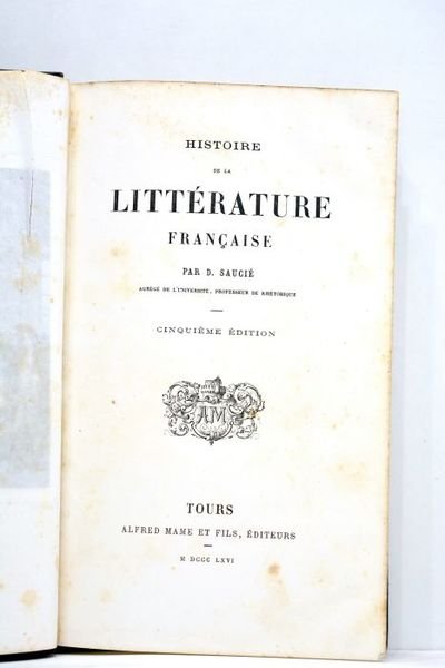 Frontispice. 484 pages. (22x13,5cm). Cartonné. Décorations à froid. Dorures. Dos à nerfs orné. Défauts d'usage. Petits accidents au dos. Rousseurs.