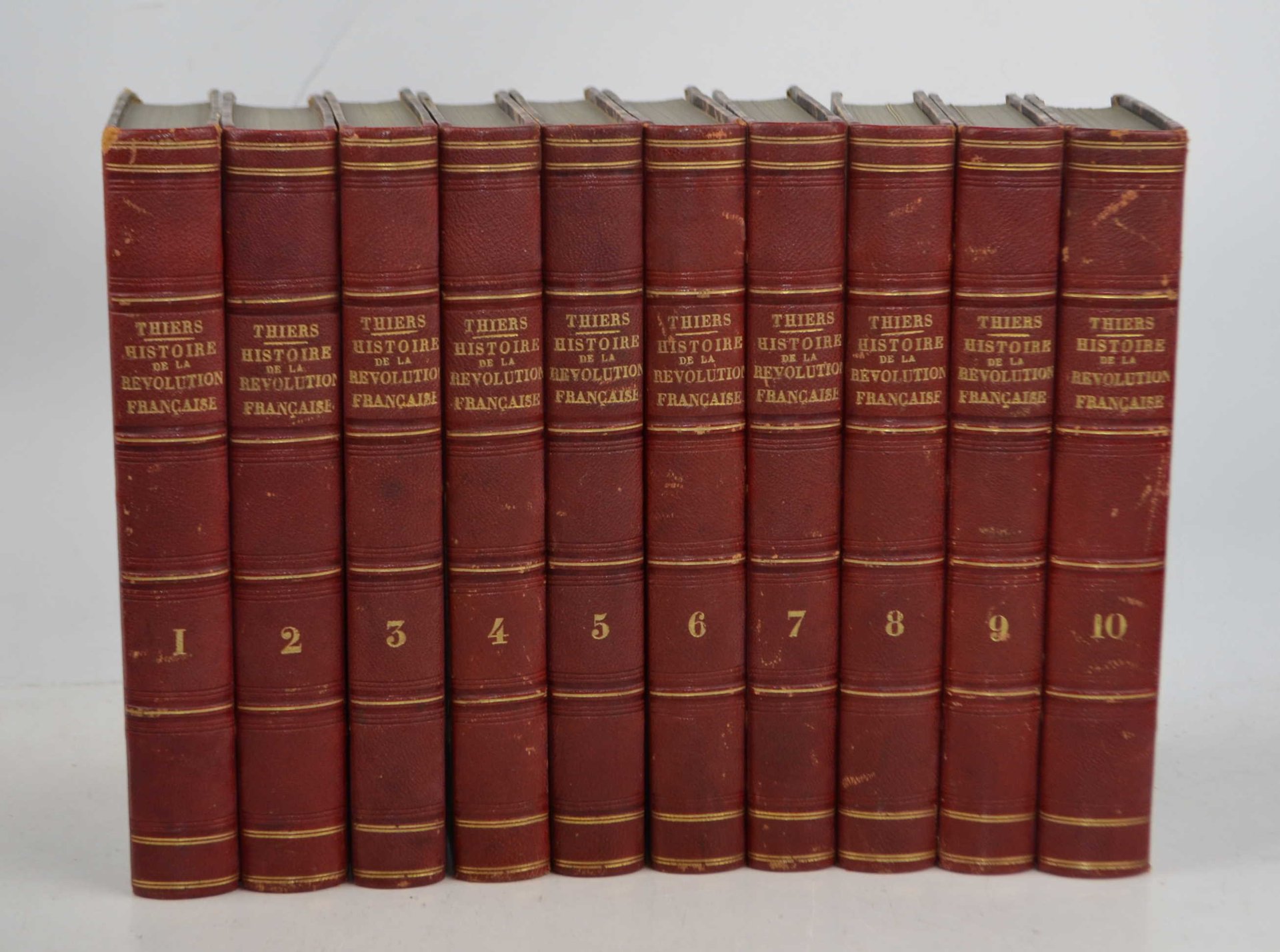 Dieci volumi di cm. 21, pp. oltre 5000 complessive. Con molte tavole incise in rame (ritratti e scene storiche). Solida legatura coeva in mezza pelle rossa, dorsi a nervi con titoli in oro. Esemplare fresco ed in ottimo stato di conservazione.