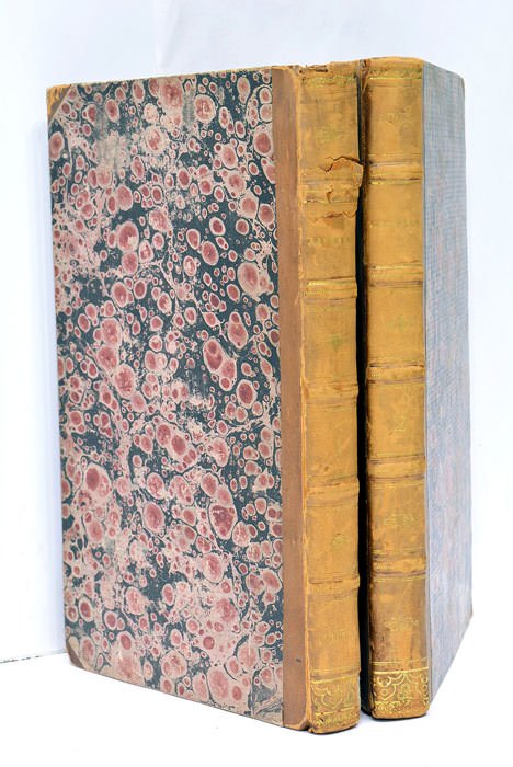 2 volumes. Frontispice. XXXII. 188 pages. 2 pages. + 208 pages. (17,5 x 10,5 Cm). Demi-veau postérieur, dos à nerfs ornés. Traces d'usage aux reliures. Rousseurs éparces. Edition Française du célèbre roman de Samuel Johnson. Joli frontispice lithographié par Antoine Chazal.