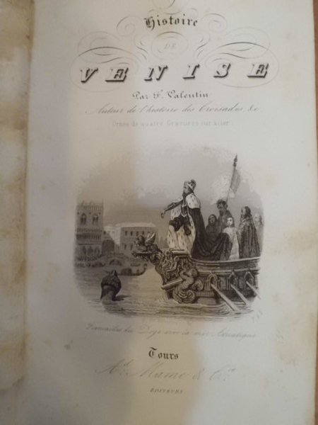 F. VALENTIN - Tours, Mame et Cie, 1842. In - 12°, m. pelle coeva e titolo con fregi in oro sul dorso, 312 pp. Con 4 finissime incisioni (gravures sur acier) di cui tre in tavole fuori testo. Raffinata edizione di un compendio storico di Venezia. Con qualche rifioritura, peraltro ottimo esemplare. Neg. mob. 7