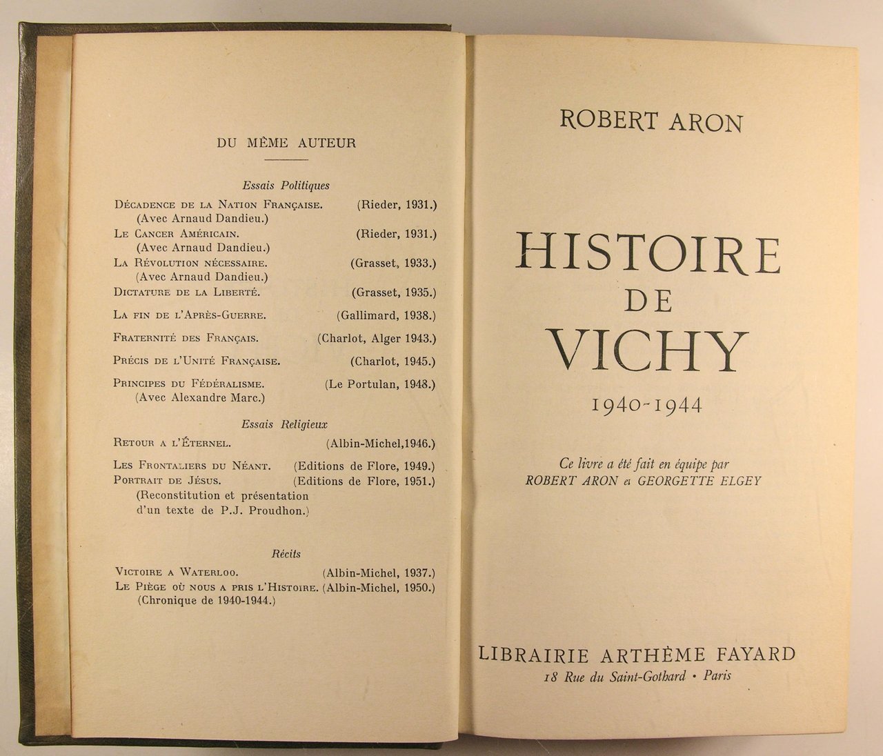 Librairie Arthème 1954, 766 pages, fort in/8 reliure en pleine basane, dos à nerfs. Ce livre a été fait en équipe par Robert Aron et Georgette Elgey.