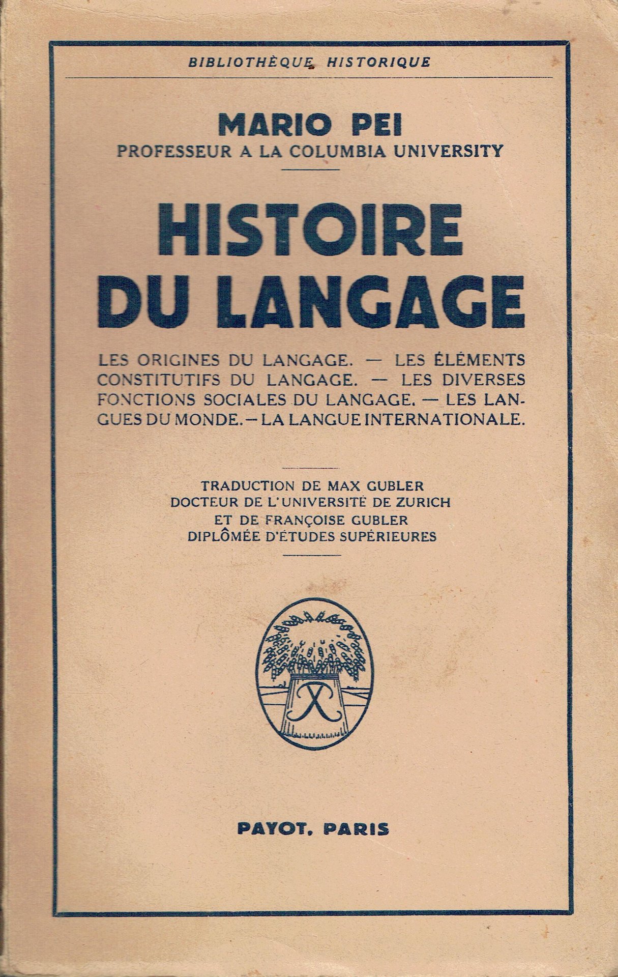 Histoire du langage:les origines du langage,les élements constituifs du langage,les diverses fonctions sociales du langage,les langues du monde,la langueinternationale | Libri antichi e moderni | Mario pei, ,Mario pei