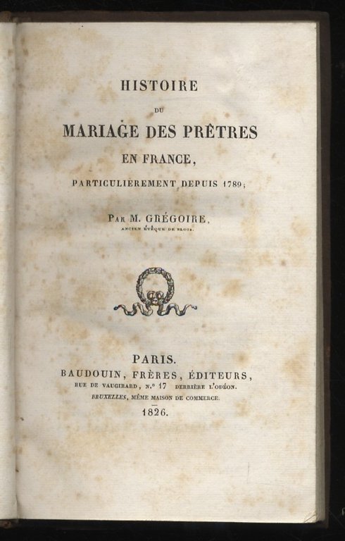Histoire du mariage des prêtres en France, particulierement depuis 1789.