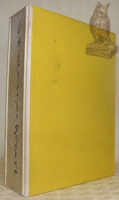 300x205mm, 97 pages, en feuilles sous couverture en bistrol recouvert d’une feuille de papier vert portant une illustration traversante. Chemise en demi-parchemin imprimé sur le dos et papier jaune. Etui recouvert de papier jaune et de parchemin sur les tranches. La suite des lithographies est présentée dans une couverture identique à celle décrite ci-dessus et contenue dans la même chemise que le texte. L’emboîtage a été exécuté par Roger Veihl, à Genève. Les 75 lithographies ont été tirées sur les presses d’Emil Matthieu, à Zurich. 1 des 45 exemplaires hors commerce sur papier Japon nacré blanc, comprenant une suite sur Japon nacré blanc, numéroté II, exemplaire nominatif imprimé pour André Gonin. Premier texte de Ramuz illustré par Erni chez l’éditeur Gonin. Bel exemplaire.