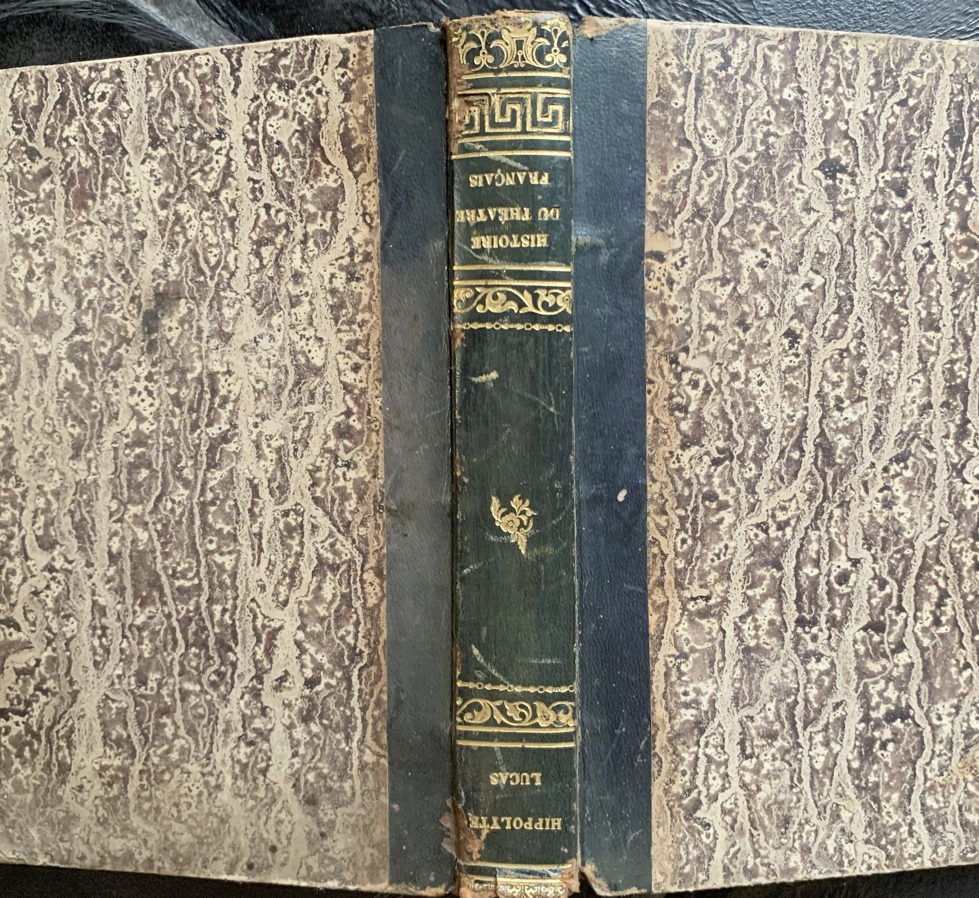 I ed.. Testo in francese. XVI/ (4)+IV+432/ rilegatura in mezza pelle (dorso rifinito in pelle verde scuro con titoli e ornati dorati - piatti marmorizzati nei toni del marrone. stato buono (margini della copertina usurati - fogli di guardia e pagine bruniti, in particolare ai margini, e con piccole fioriture). Table des matières: Origine du théâtre-Français - Jodelle... - Rotrou... - Premières pièces de Corneille - Chefs-d'oeuvre de Corneille - Dernières pièces de Corneille - Corneille de l'Isle (Thomas)... - Molière - L'abbé de Pure... - Racine - Dancourt... - Pradon... - Jean-Baptiste Rousseau... - Voltaire... - La Chaussée... - Diderot... Théâtre révolutionnaire... - Népomucène Lemercier... - Collin d'Harleville... - Victor Hugo... - Conclusion - table chronologique des principaux ouvrages dramatiques représentés en France depuis l'an 1200 jusqu'eu 1842.